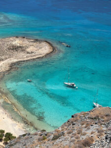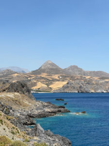 Vlatos: Vlatos is a charming mountain town located in the foothills of the White Mountains. Surrounded by groves of fig and olive trees, its slopes gently roll towards the unparalleled beauty of the Balos Lagoon and Falasarna coast. Its convenient location, halfway between the northern and southern coast, makes it the ideal base town for some of Crete’s most iconic coastal hikes.