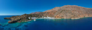 Chora Sfakion: Chora Sfakion is located where Europe ends. Here, at the southern edge of Crete, the Libyan Sea extends south to the horizon. Above the village the headlands of Crete’s southern coast culminate in the rugged desert-like beauty of the Lefka Ori, White Mountains, deep gorges, unspoiled coastlines, and solitary chapels. A sense of peace and remoteness complete the picture. If relaxation and Mediterranean carefree approach to life are what you seek, Chora Sfakion is the answer.